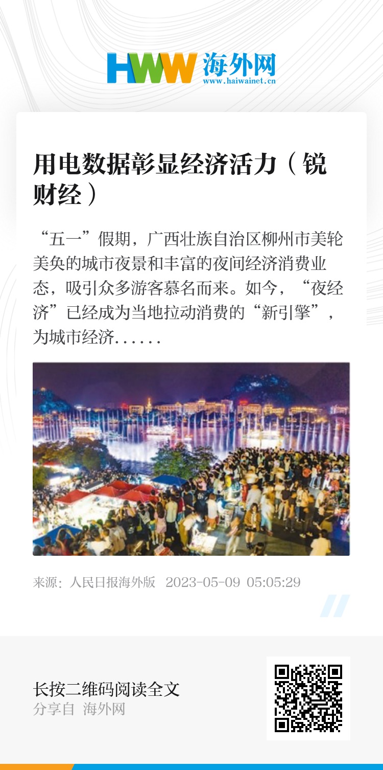 在湖南长沙,“五一”假期商圈日用电量同比上涨13.27%;在贵州,全省商业用电量达1.47亿千瓦时,同比增长9.7%……刚刚过去的“五一”小长假,人们出行热情高涨,商业、旅游用电量明显提升。