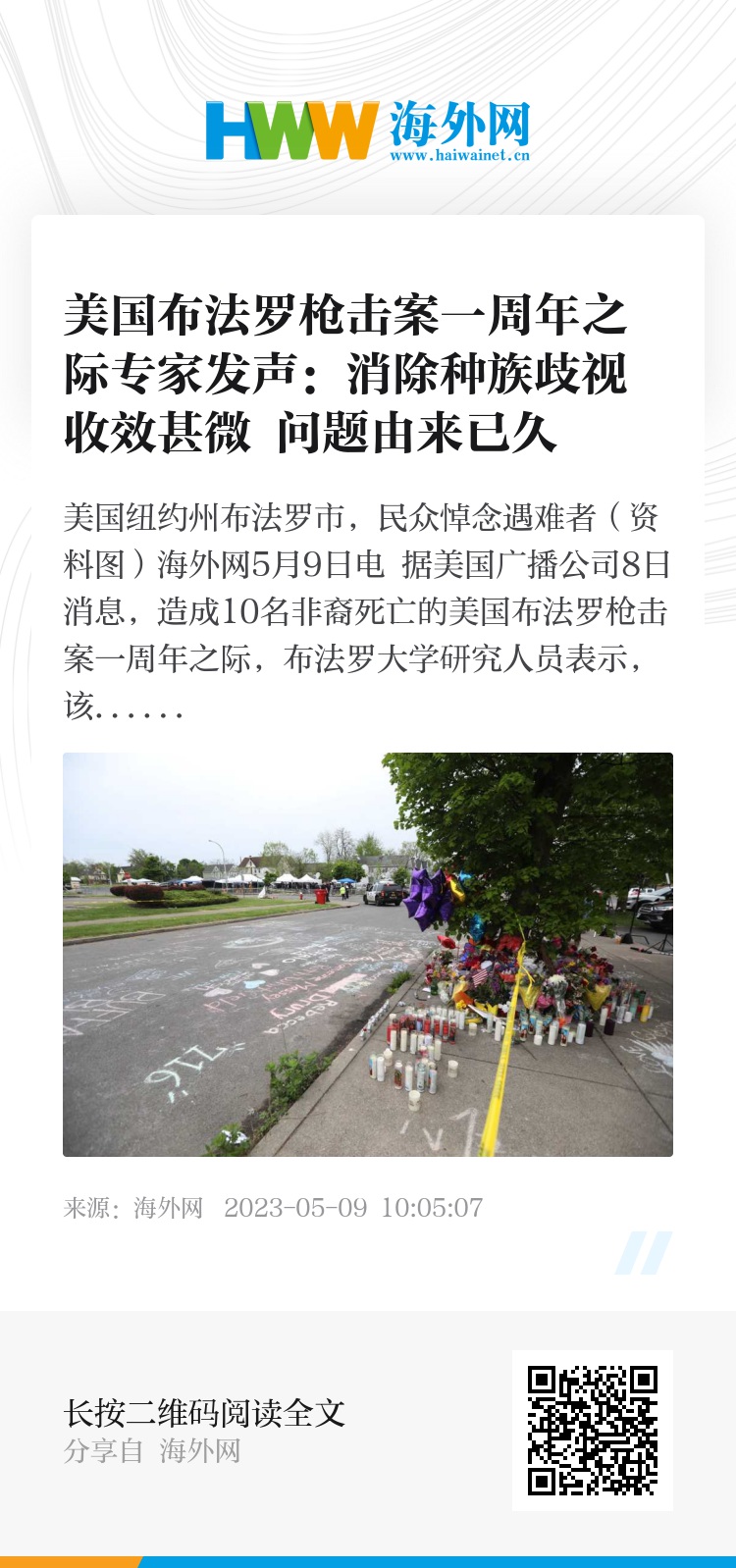 海外网5月9日电 据美国广播公司8日消息,造成10名非裔死亡的美国布法罗枪击案一周年之际,布法罗大学研究人员表示,该市30年来在实现平等和遏制种族歧视方面的进展收效甚微,教育、就业、收入等各方面的不平等待遇,使该市85%的非裔居民不得不住在当地最差的住宅区里。