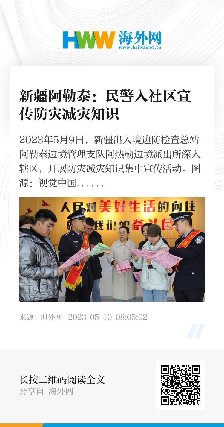 32601756,.新疆阿勒泰:民警入社区宣传防灾减灾知识,.2023-05-10 08:17:02,.204441,.张荣耀