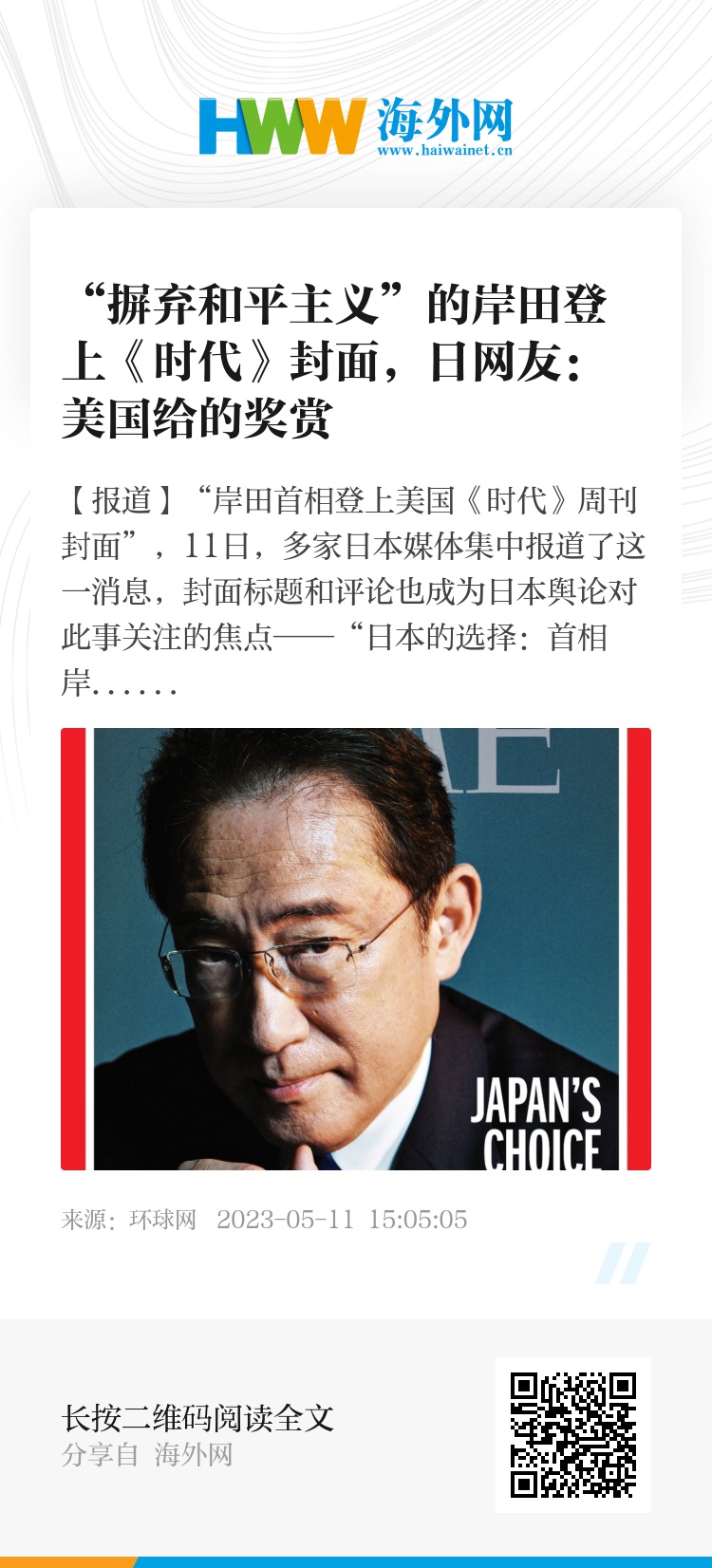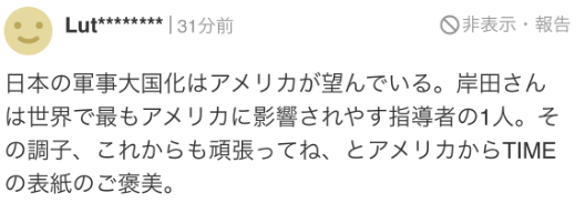 也有网友分析称,“美国希望日本成为军事大国。岸田是世界上最容易受美国影响的领导人之一。作为奖赏,美国让岸田上了《时代周刊》封面,告诉他要‘再接再厉’”。