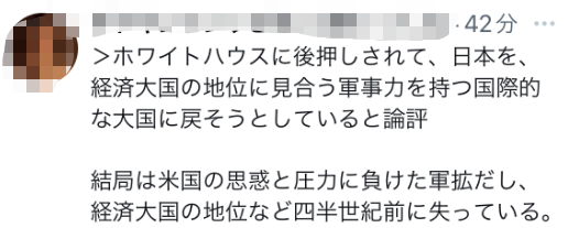 有人说道,“到最后还是输给了美国的图谋和压力推进军备扩张。而且日本在约25年前就失去了经济大国地位”。