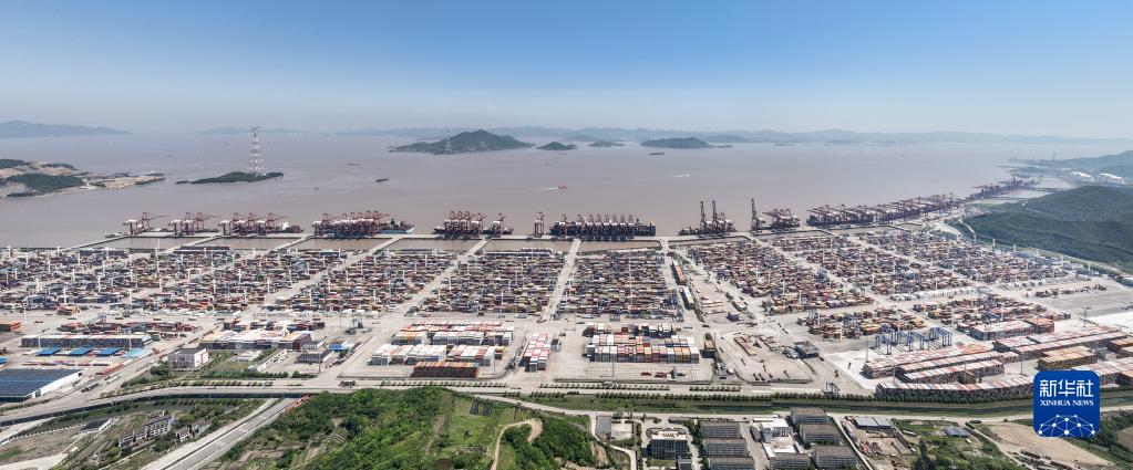 5月9日拍摄的宁波舟山港穿山港区(无人机全景照片)。新华社记者 翁忻旸 摄
