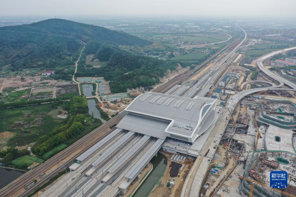 这是沪宁沿江高速铁路江阴站站房(4月28日摄,无人机照片)。新华社记者 季春鹏 摄