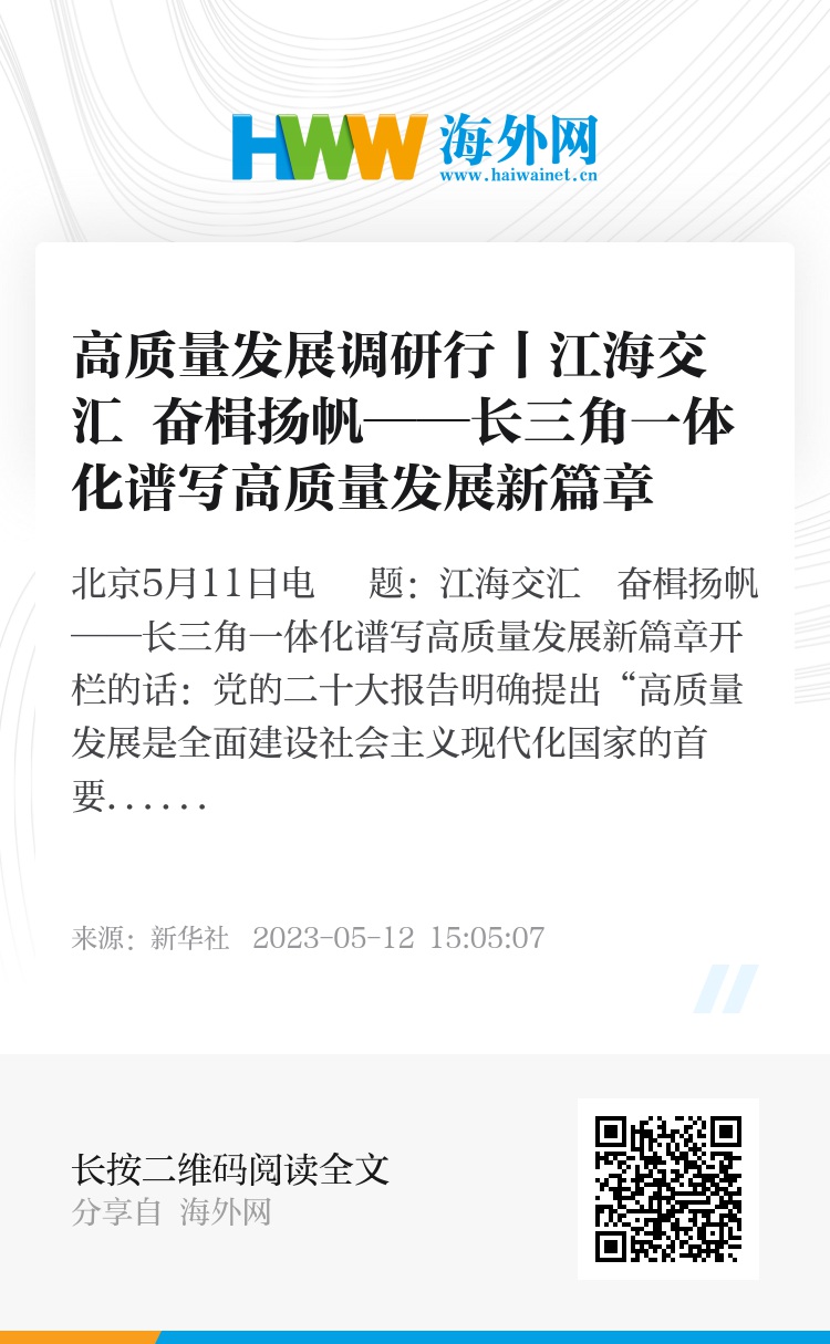 新华社北京5月11日电 题:江海交汇 奋楫扬帆——长三角一体化谱写高质量发展新篇章