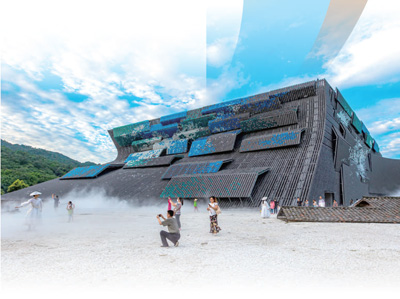 “只有峨眉山”演艺项目的室外剧场,游客正在参观打卡。