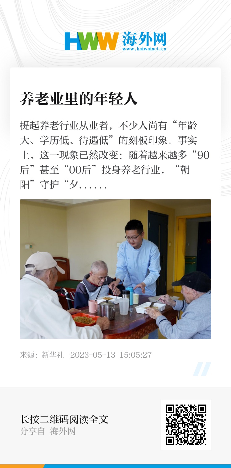 “随着薪酬待遇的提高、岗位技术含量的提升、新科技在行业内的应用,养老行业对年轻人的吸引力将持续增强,必将推动我国养老事业高质量发展,托起老年人的幸福晚年。”乔毅皓说。