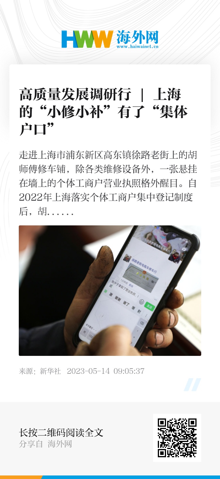 作为浦东首家个体工商户集中登记疏导点,高东镇徐路村村委会目前已帮助包括胡师傅在内的4位手艺人领到营业执照。“未来我们还打算将这些个体工商户的服务类别、收费价格等经营信息放在本地政务平台上。”高东镇徐路村党支部书记李雄伟说,“有了这第一批的‘示范样本’,相信会有更多个体工商户加入这个队伍,更好服务居民。”