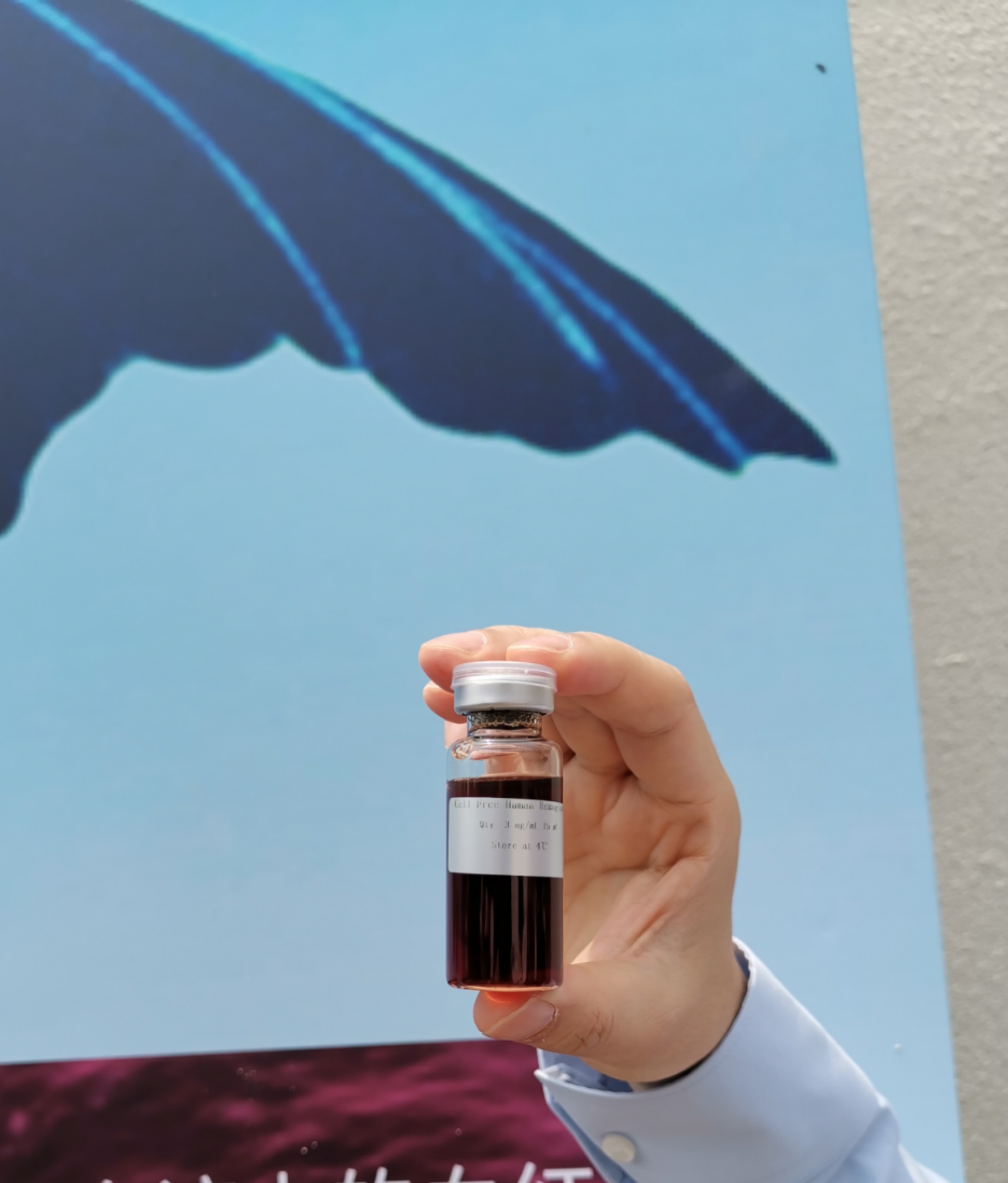 一个透明小瓶子,装着15毫升深红色液体,官方名称是无细胞合成人血红蛋白,通俗地说,就是“人造血”。