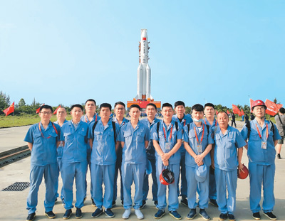 参与长征五号B遥二运载火箭发射任务期间,工作人员在海南文昌发射场合影留念。(资料照片)