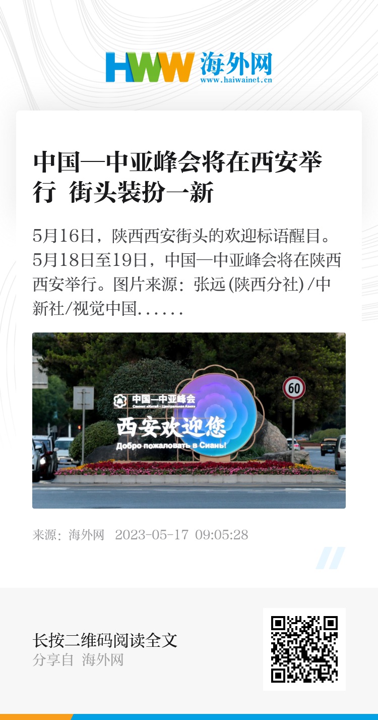 32604825,.中国—中亚峰会将在西安举行 街头装扮一新,.2023-05-17 09:30:28,.204428,.张青津、庄鹏泽