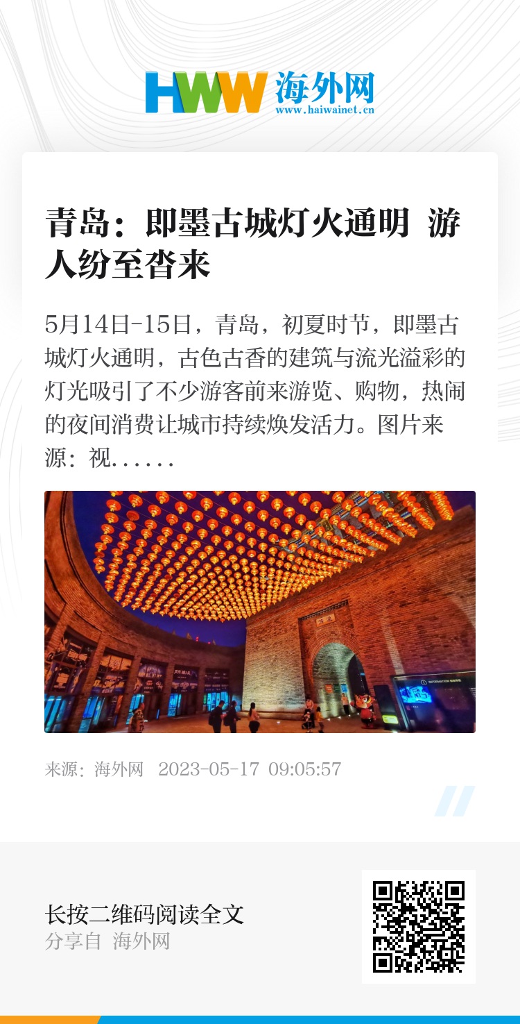 32604829,.青岛:即墨古城灯火通明 游人纷至沓来,.2023-05-17 09:51:57,.204428,.张青津、庄鹏泽
