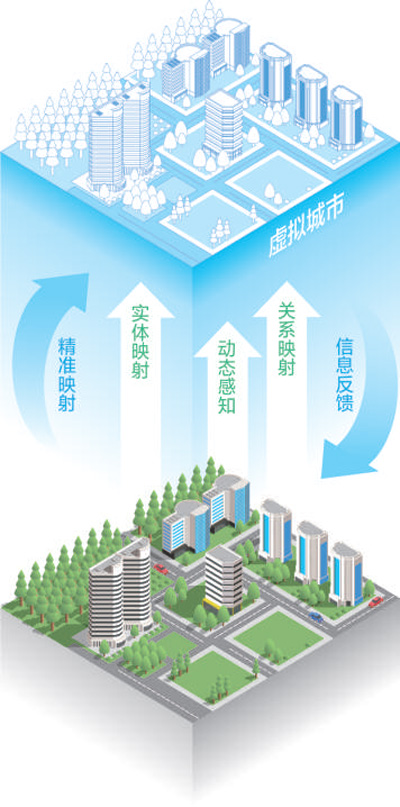 数字孪生技术应用到城市中,能够对城市的各种要素、数据进行模拟和仿真。中国电子云副总裁曹心驰认为,数字孪生城市是在建筑信息模型和城市三维地理信息系统的基础上,利用物联网技术把物理城市的各种要素进行数字化,然后在网络空间上构造一个与之完全对应的“虚拟城市”,形成物理上的实体城市和信息上的数字城市同生共存、虚实交融。