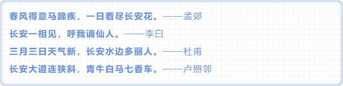 这里还有分分钟可以承包语文课本的文人墨客:王昌龄、杜牧、杜如晦、颜真卿……关于长安的诗词更是不计其数,无数文人从这座古城里汲取灵感,写下了生动的“长安印象”: