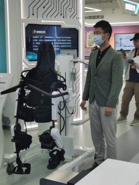 上海城市数字化转型体验馆内展示的智能康复机器人。方敏摄