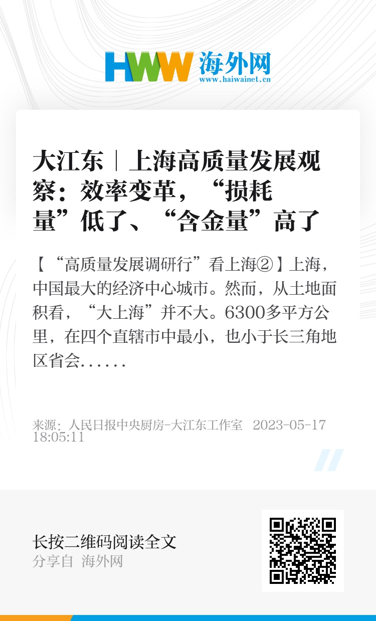 聚精会神、锲而不舍推动经济发展效率变革,就是答案之一。近年来,上海大力推动经济发展效率变革,畅通土地、资金、人才、数据等生产要素流动,在提升城市经济密度、提高投入产出效率上下功夫,在提升配置全球资源能力上下功夫,在增强创新策源能力上下功夫,让城市经济发展产生“核聚变”。