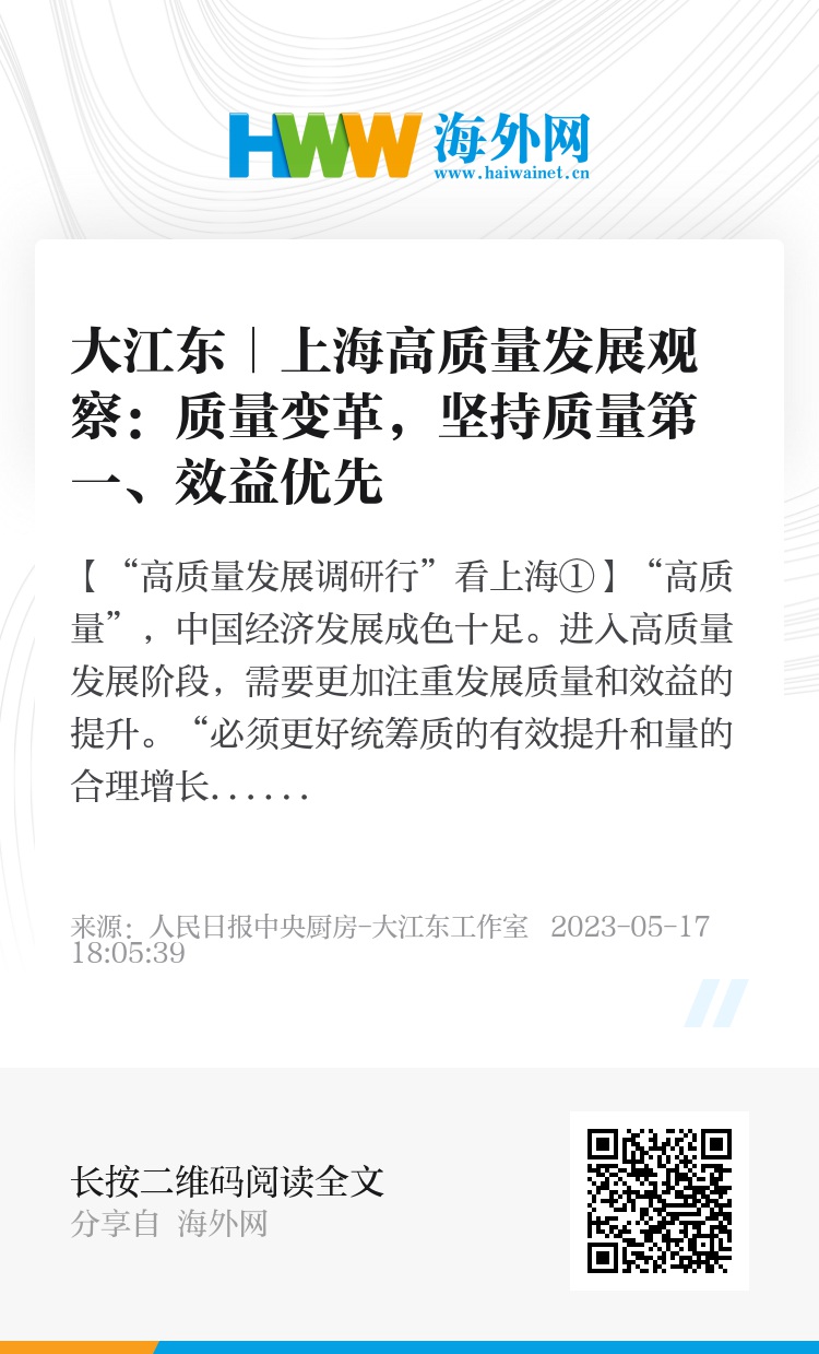 对于上海来说,高质量发展尤显重要。2018年11月,习近平总书记在上海考察时提出,“要主动推动质量变革、效率变革、动力变革,在提高城市经济密度、提高投入产出效率上下功夫,在提升配置全球资源能力上下功夫,在增强创新策源能力上下功夫,加快建设现代化经济体系。”