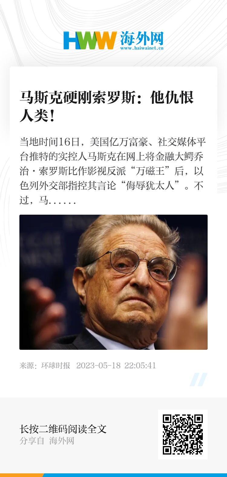 当地时间16日,美国亿万富豪、社交媒体平台推特的实控人马斯克在网上将金融大鳄乔治·索罗斯比作影视反派“万磁王”后,以色列外交部指控其言论“侮辱犹太人”。不过,马斯克并没有被此吓到,反而在后面几天不断还击。