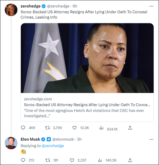 对此,马斯克回复道:“确实如此”,并把自己的回复特意标注给索罗斯本人以及其他几个索罗斯支持者的账号。