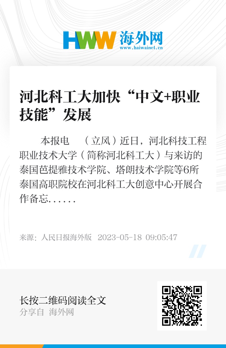 据了解,河北科工大近年来不断拓展与泰国多院校、多专业的合作,加快培养符合中泰两国经济发展的专业技能人才,促进产教融合,主动打造广泛深入的国际合作伙伴体系,助力“一带一路”职业教育高质量发展。