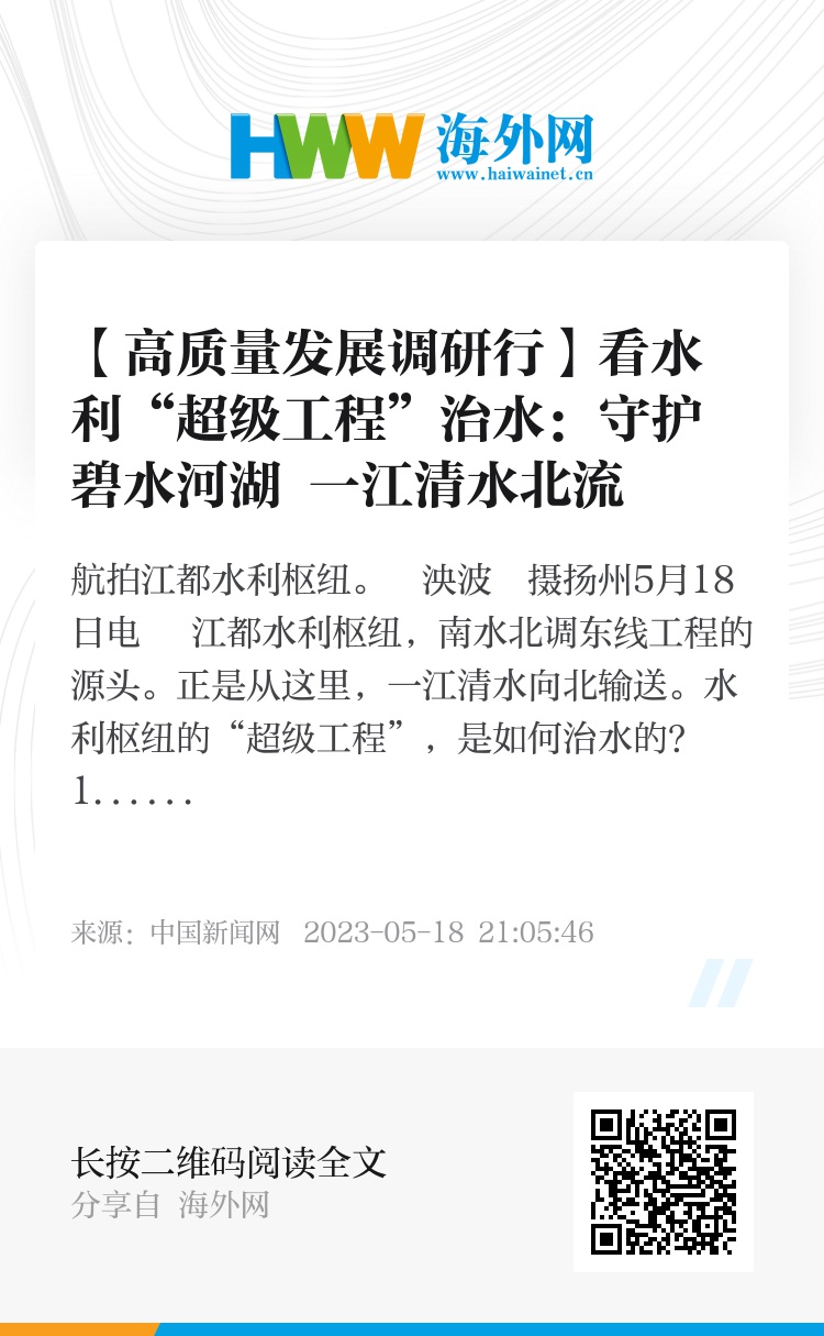 中新网扬州5月18日电 江都水利枢纽,南水北调东线工程的源头。正是从这里,一江清水向北输送。水利枢纽的“超级工程”,是如何治水的?18日,中新网记者跟随“高质量发展调研行”媒体团采访江苏省江都水利工程管理处。