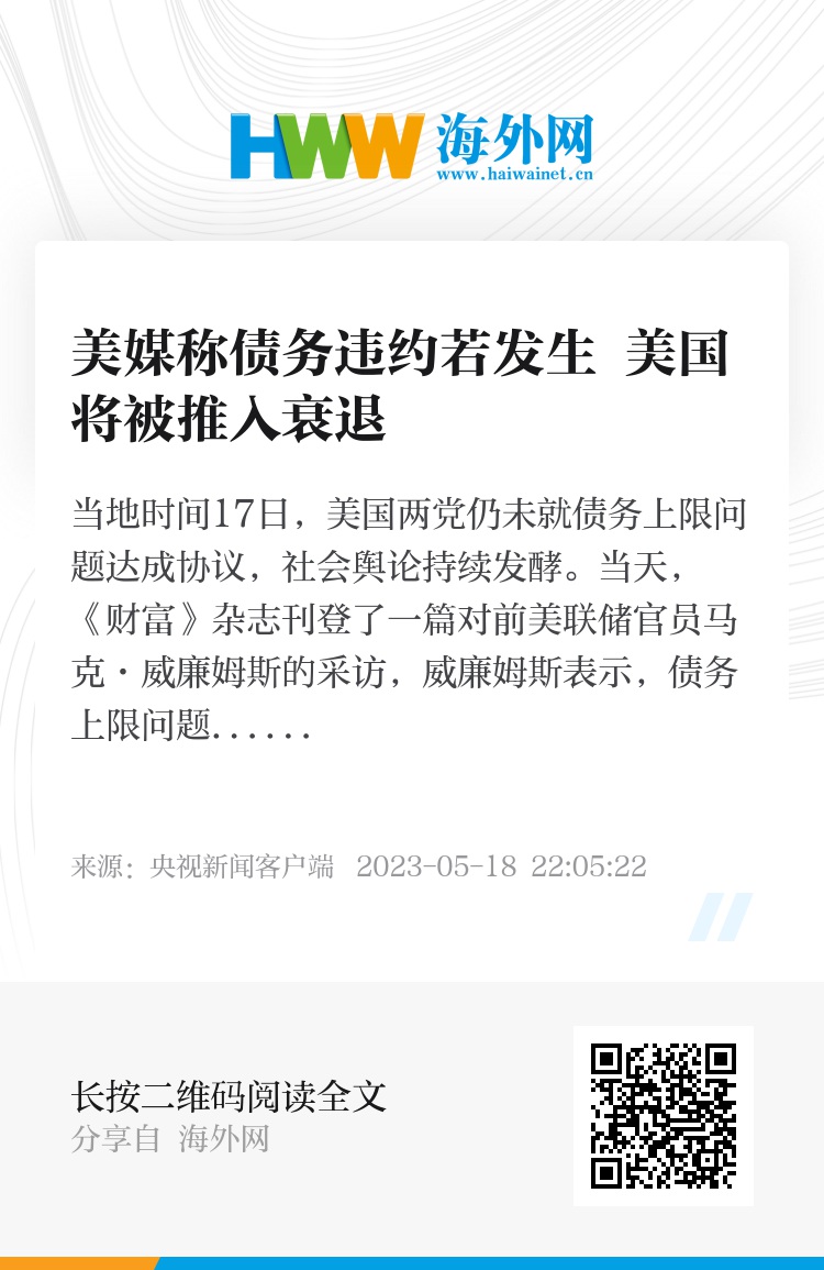当地时间17日,美国两党仍未就债务上限问题达成协议,社会舆论持续发酵。