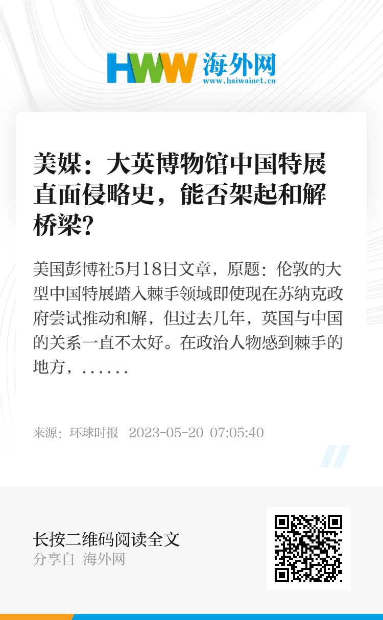 美国彭博社5月18日文章,原题:伦敦的大型中国特展踏入棘手领域