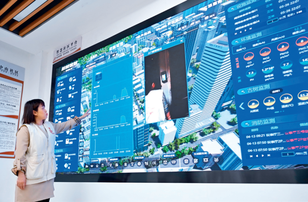 福建省福州市鼓楼区是国家智能社会治理综合实验基地,社区工作者在鼓楼区鼓东街道中山社区介绍“智慧社区”建设情况(2023年 4 月 25 日摄) 林善传摄 / 本刊