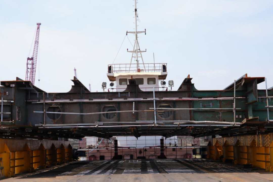 走进工厂,一派热火朝天的场景。大型干船坞内,正在建造大型货轮,不远处的码头上,几艘巨轮靠泊在码头等待舾装。