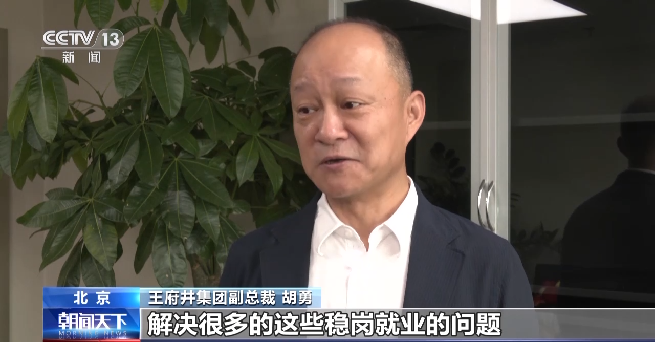 王府井集团副总裁 胡勇:一个是能看得到的,包括售货员、负责接待的迎宾的人,但实际上后边还有看不到的很多的工种,包括筹划、招商、数据的分析和营运的统计,一个中型的商场就业人数应该在2000—2500人之间,所以其实它是能够解决很多稳岗就业问题。