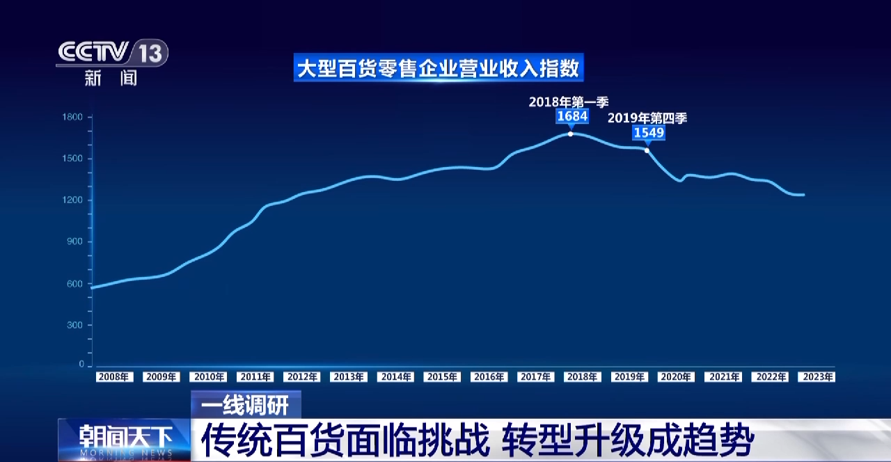 记者从中国百货商业协会了解到,全国“大型百货零售企业营业收入指数”在2018年第一季度达到最高点后逐步开始回落。现在整个行业正处于转型调整期。