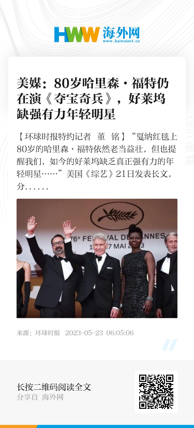 【环球时报特约记者 董 铭】“戛纳红毯上80岁的哈里森·福特依然老当益壮,但也提醒我们,如今的好莱坞缺乏真正强有力的年轻明星……”美国《综艺》21日发表长文,分析美国影坛陷入“后继无人”的困境,过分追求IP和网络流量的商业操作,正在杀死曾造出无数“男神”“女神”的好莱坞明星体系。