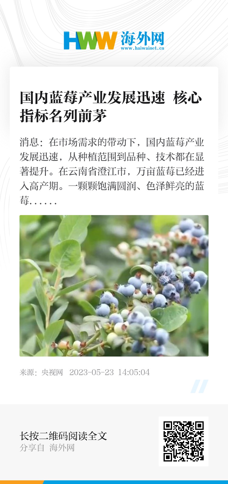 央视网消息:在市场需求的带动下,国内蓝莓产业发展迅速,从种植范围到品种、技术都在显著提升。
