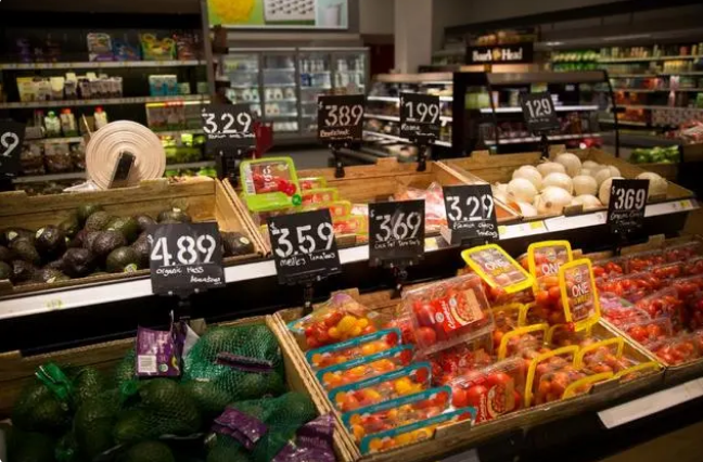 这是2月14日在美国纽约市布鲁克林一家食品杂货店拍摄的商品价签。新华社发(郭克摄)