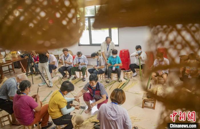 2022年7月,海南省琼海市阳江镇脱贫的农民在学习制作竹器。蒙钟德 摄