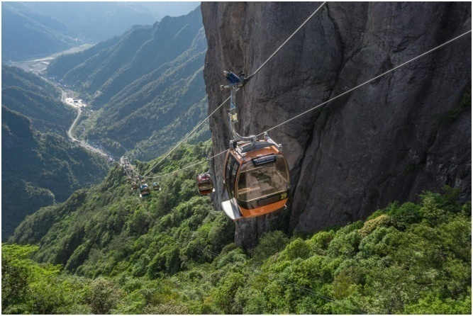 游客搭乘缆车上山观景。仙居宣传部供图