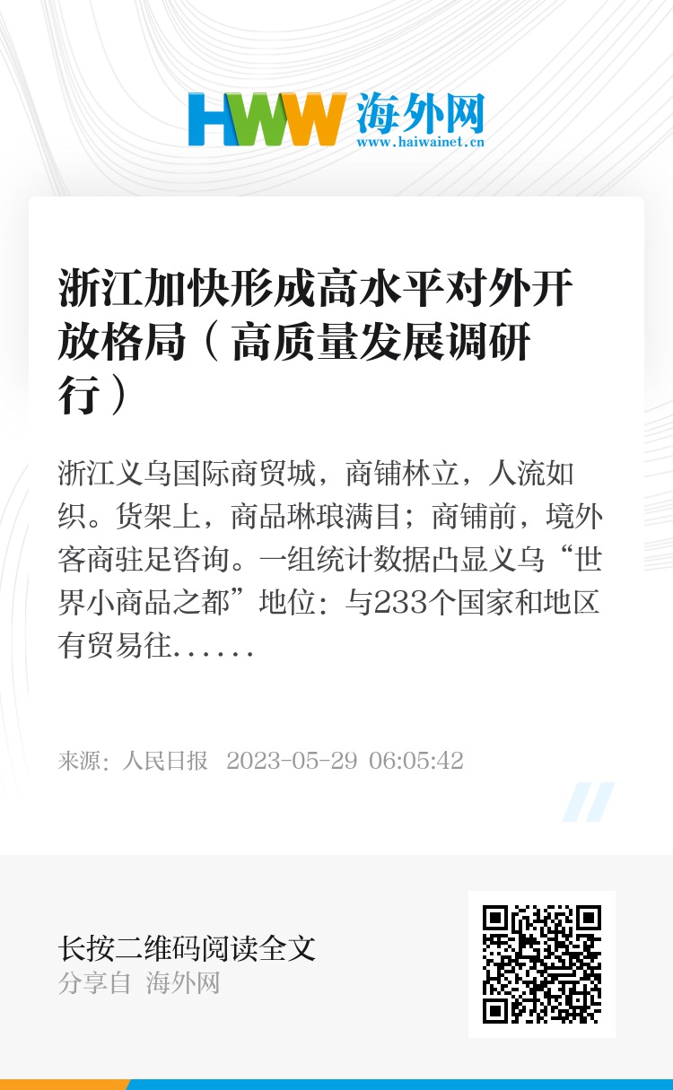 加快打造高能级开放大省,浙江高水平对外开放的格局正加速形成。(记者 窦 皓 韩 鑫 窦瀚洋)