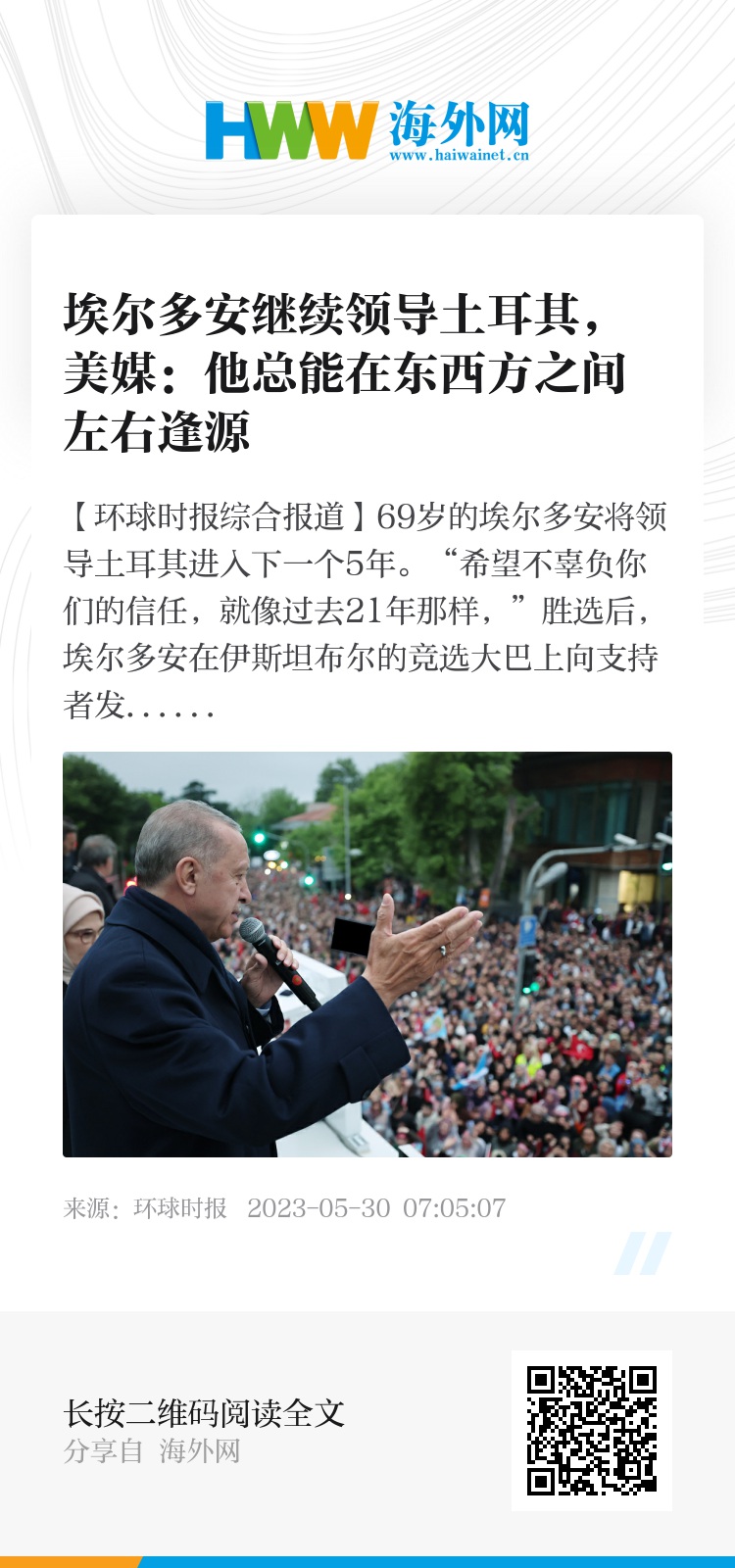 比利时欧洲新闻网29日称,随着土耳其在外交事务中日益采取独立性的立场,西方国家可能会对选举结果表示“哀叹”。《华尔街日报》29日发表评论称,埃尔多安28日以微弱优势赢得了连任,北约盟国希望埃尔多安再次掌权后不会那么难以驾驭。毕竟他希望美国提供F-16战机,以换取土耳其对瑞典加入北约的支持,这可能是“值得付出的代价”。文章称,埃尔多安将与俄罗斯保持友好关系,“他总能在东西方之间左右逢源”。