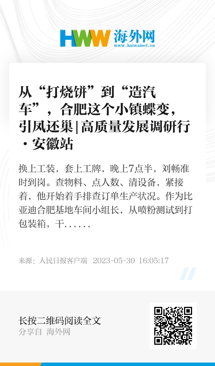 从“打烧饼”到“卖汽车”,从贫困县到百强县,“随着企业入驻,去年就有总投资约350亿元的产业链项目签约落地下塘。”长丰县委常委、常务副县长石磊说,比亚迪合肥基地项目全部完工后,将创造约10万个就业岗位,“基础设施有了,商业配套起来了,年轻人也愿意回来了。”