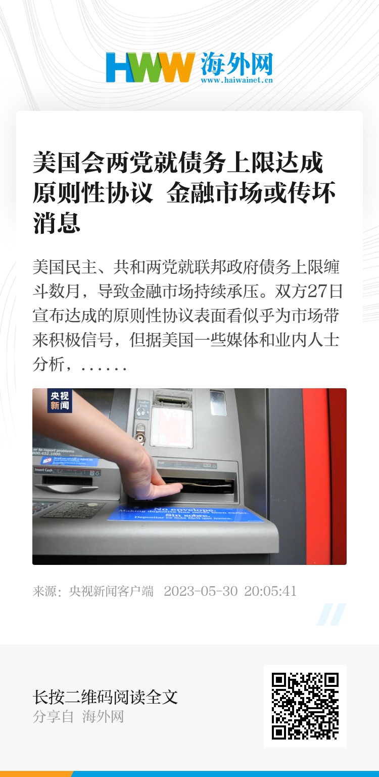 路透社28日发表题为《债务协议或仅能让市场短暂轻松》的分析文章。文章开门见山地写道,“就美国债务上限僵局达成初步协议的好消息可能很快会变成金融市场的坏消息。”