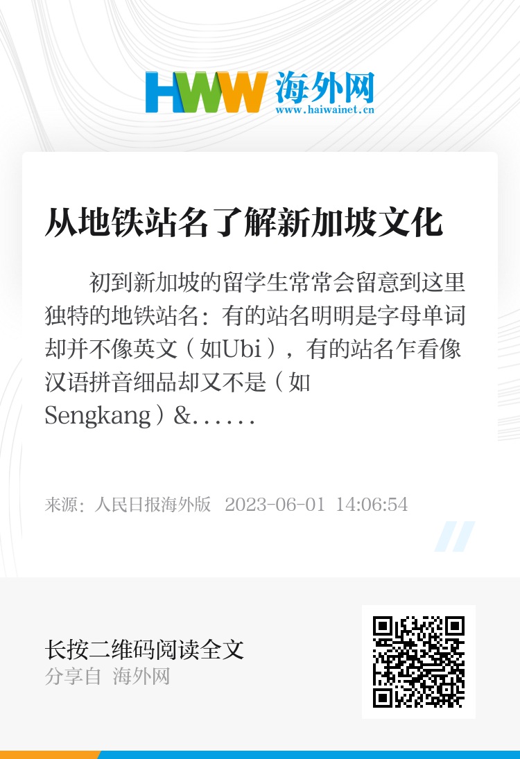 初到新加坡的留学生常常会留意到这里独特的地铁站名:有的站名明明是字母单词却并不像英文(如Ubi),有的站名乍看像汉语拼音细品却又不是(如Sengkang)……若对新加坡的自然人文概况缺乏了解,这些站名或许还会给留学生带来迷路困扰。