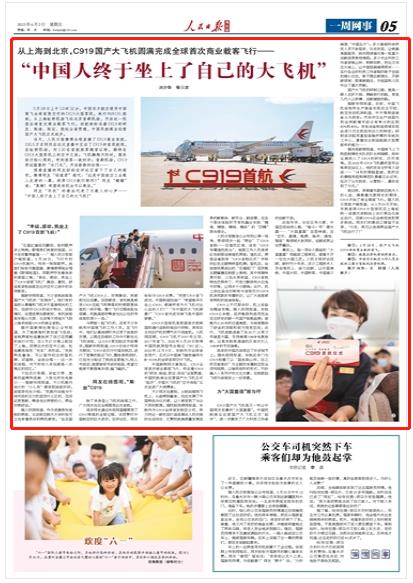 中国新闻网文章指出,C919全球首次商业载客飞行,标志着C919的“研发、制造、取证、投运”全面贯通,中国民航商业运营国产大飞机正式“起步”,中国大飞机的“空中体验”正式走进广大消费者。