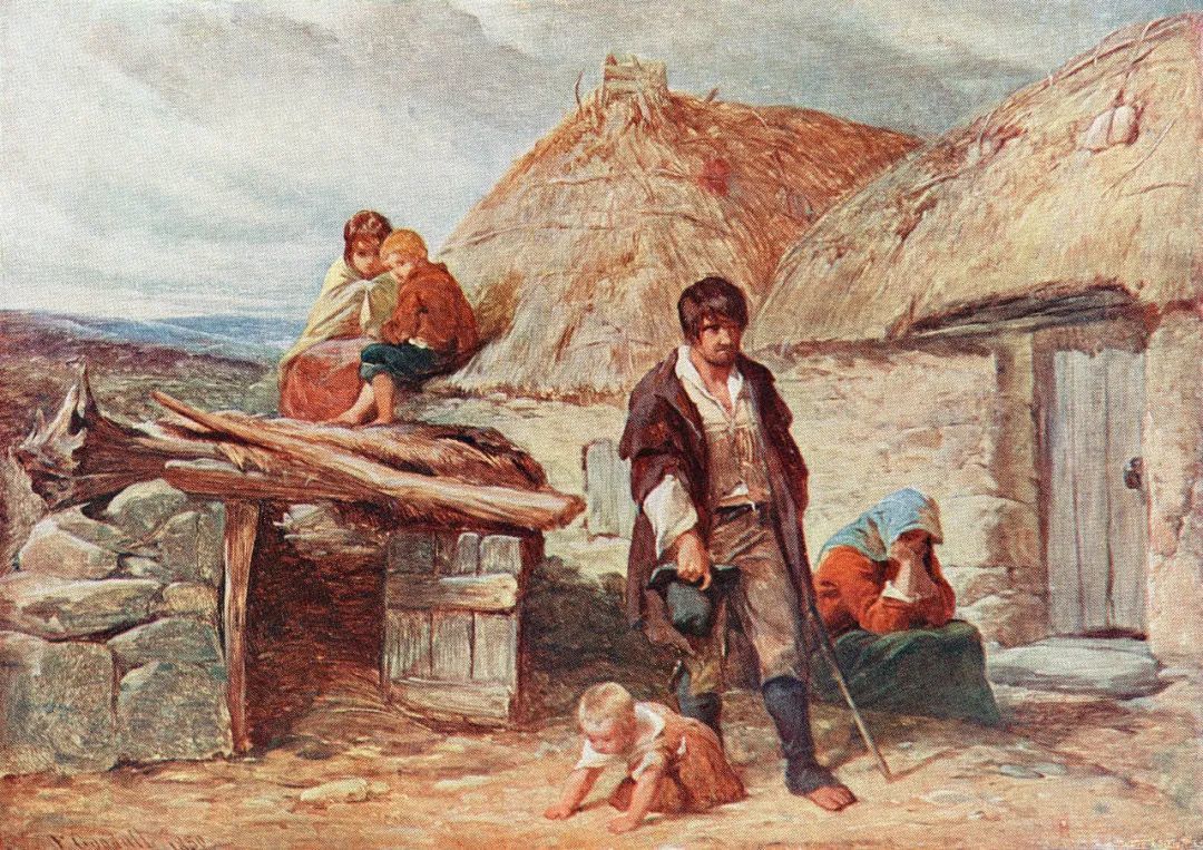 19世纪中叶,描述饥荒下的爱尔兰一家的画作 绘/F·古德 来源/图虫创意