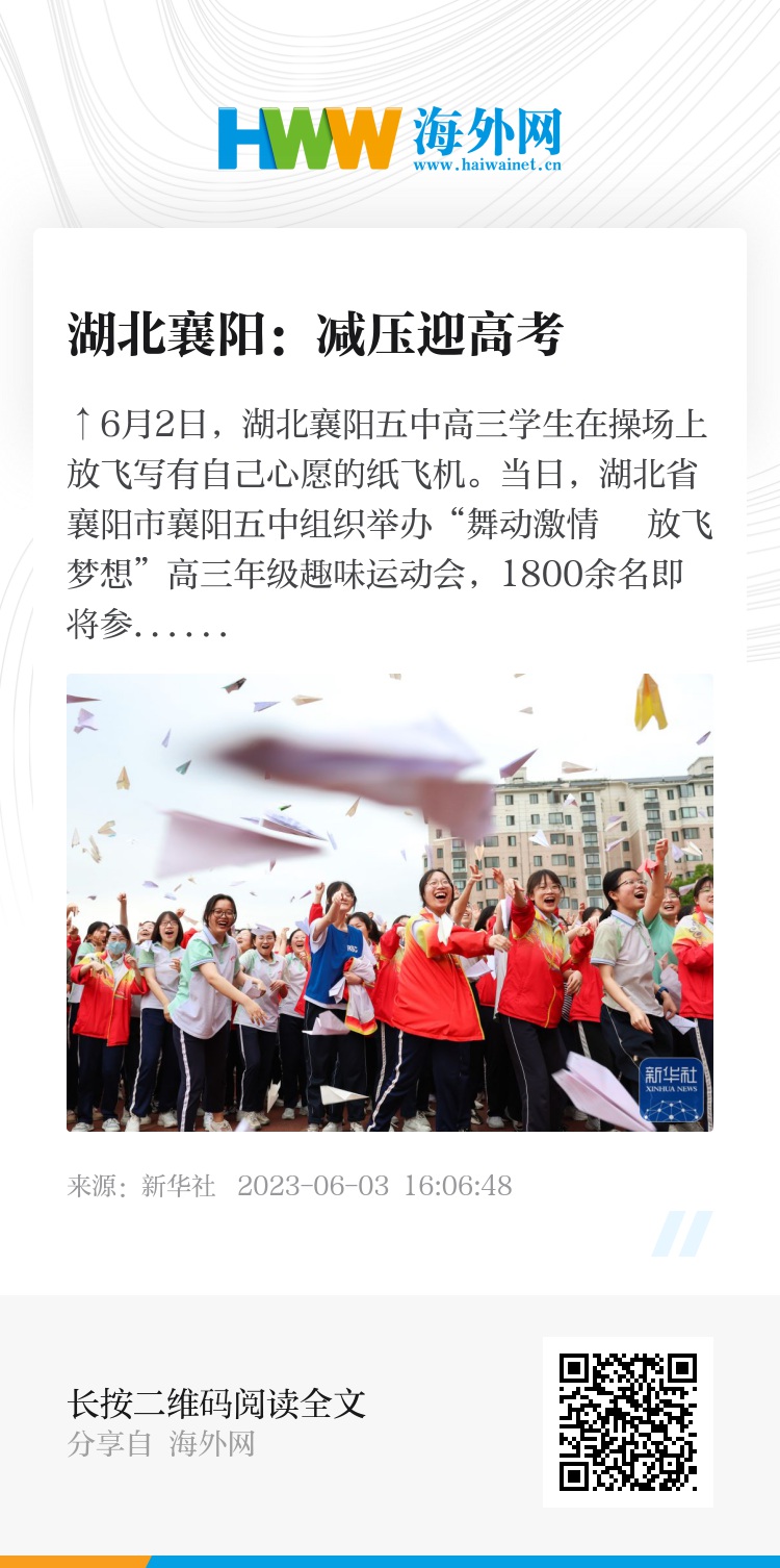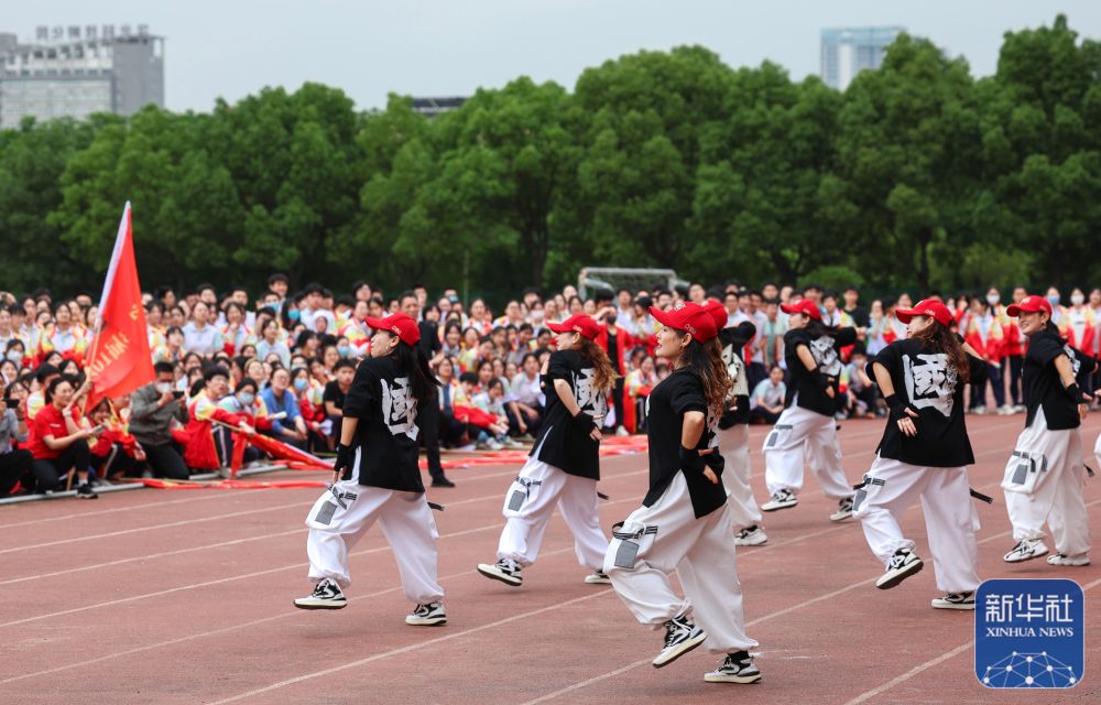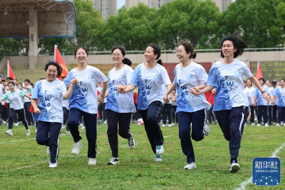 当日,湖北省襄阳市襄阳五中组织举办“舞动激情 放飞梦想”高三年级趣味运动会,1800余名即将参加高考的学生在趣味游戏中释放身心压力。新华社发(杨东摄)