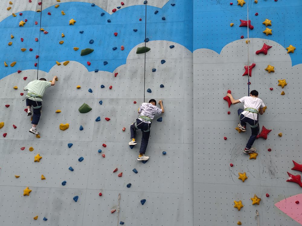 抽空集体玩起了攀岩