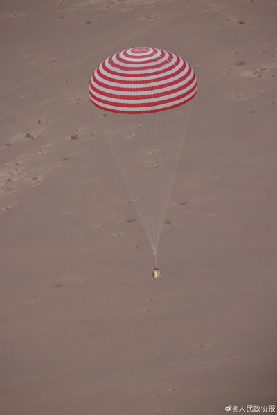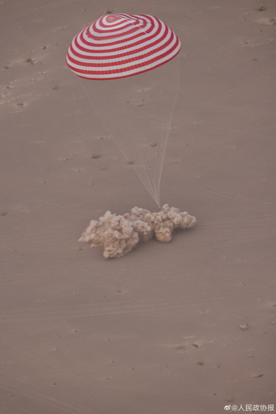 神舟十五号载人飞船返回舱开伞成功