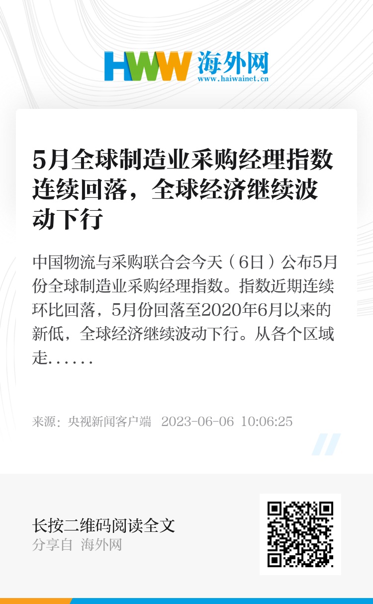 中国物流与采购联合会今天(6日)公布5月份全球制造业采购经理指数。指数近期连续环比回落,5月份回落至2020年6月以来的新低,全球经济继续波动下行。从各个区域走势看,亚洲和非洲主要国家制造业走势相对稳定,成为当前稳定制造业运行的主要力量。