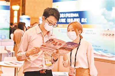 近日,参会人员在“推动高质量发展·香港论坛”的香港服务业展览上交谈。