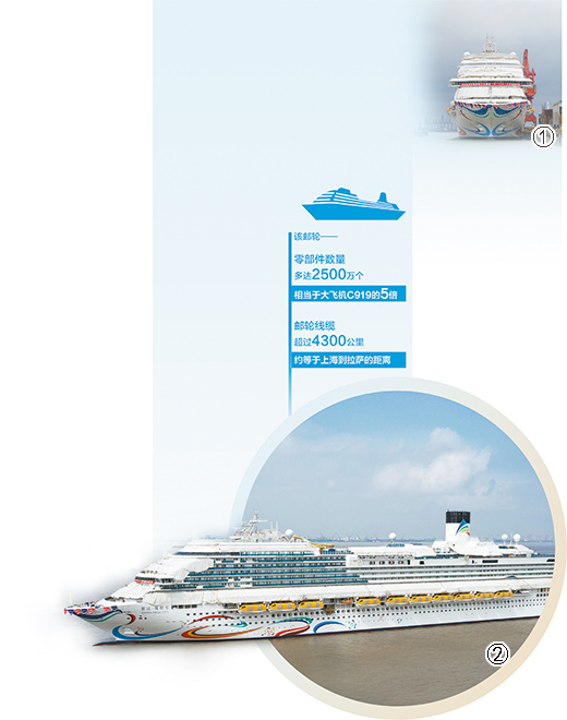 大型邮轮更是目前全球最复杂的单体机电产品。“该邮轮零部件数量多达2500万个,相当于大飞机C919的5倍。一艘30万吨原油船的线缆,长度只有100公里至120公里,而这艘邮轮线缆长度超过4300公里,约等于上海到拉萨的距离。”陈虹说。