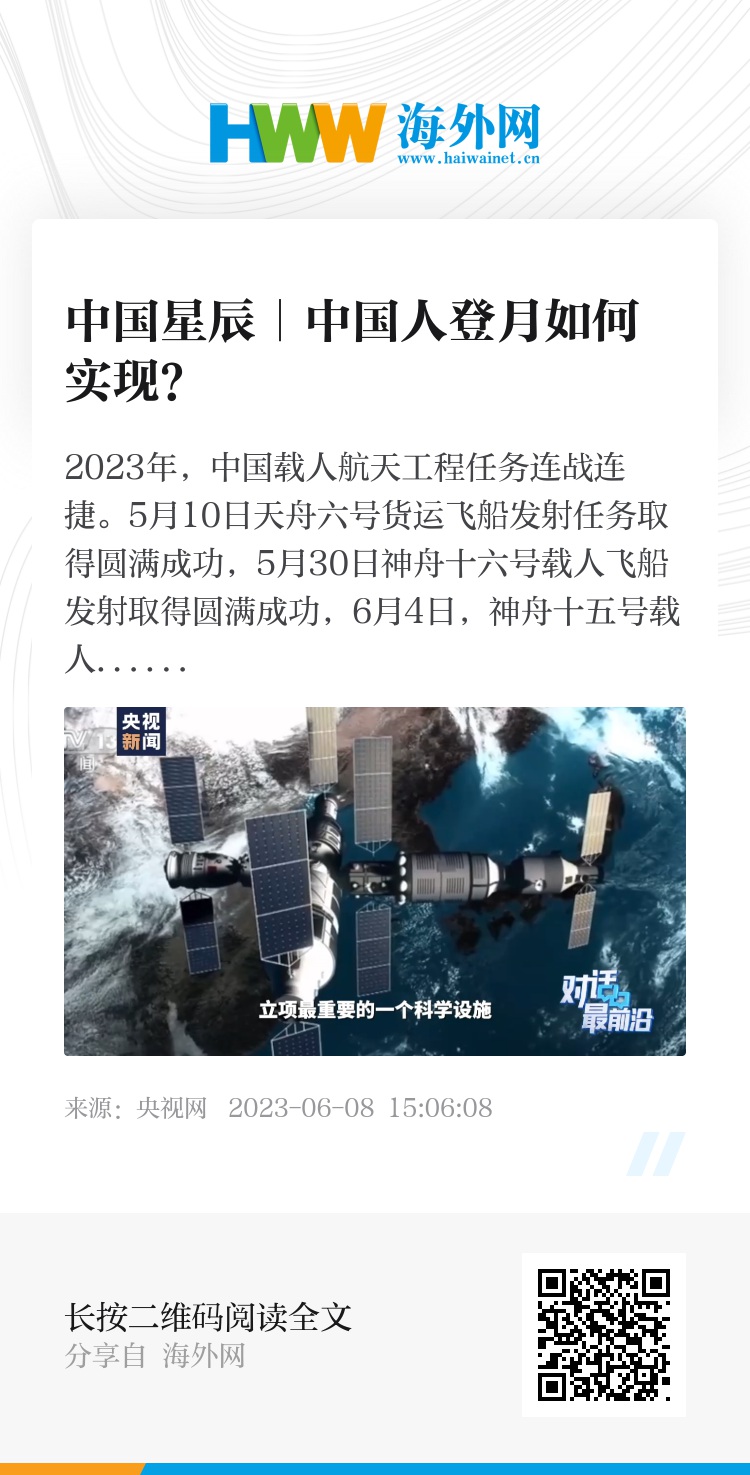 2023年,中国载人航天工程任务连战连捷。5月10日天舟六号货运飞船发射任务取得圆满成功,5月30日神舟十六号载人飞船发射取得圆满成功,6月4日,神舟十五号载人飞船返回舱在东风着陆场成功着陆,神舟十五号载人飞行任务取得圆满成功。中国载人航天工程开启空间站应用与发展新阶段新篇章。在实施空间站应用与发展阶段任务的同时,工程也在全力推进载人月球探测任务,目前已完成载人月球探测关键技术攻关和方案深化论证,今年将全面开展登月阶段各项研制建设工作。