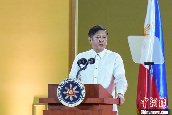 菲律宾总统马科斯6月8日晚出席第三届“中菲相知奖”颁奖仪式并致辞。中新社记者 张兴龙 摄